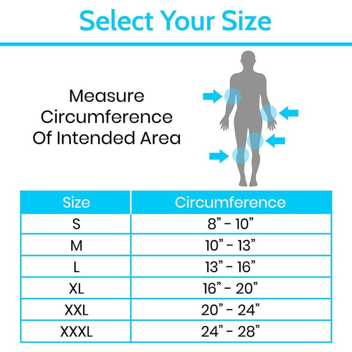 The compression strap included with the gel sleeve allows you to secure it firmly in place. It also allows you to customize the level of compression according to your needs, to boost circulation and reduce swelling.