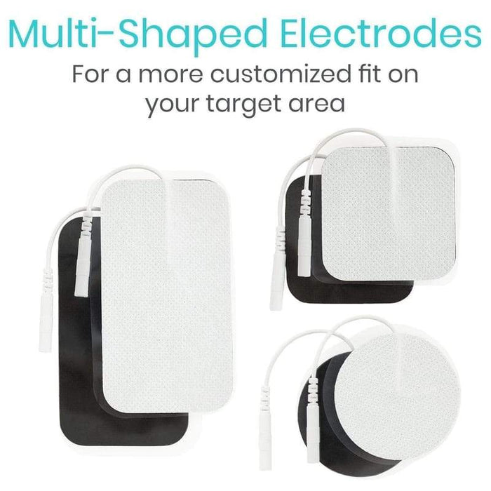 Includes: TENS unit, 8 electrode pads, 2 input electrode cables, 1 USB battery charger & 1 mini-USB cable