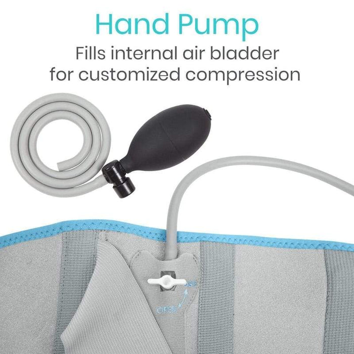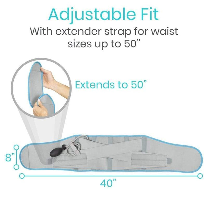 The Vive compression back ice wrap is adjustable to fit waist sizes up to 50” when used with the included extender strap.