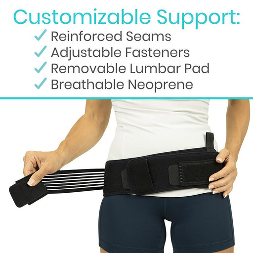 The adjustable Back Brace with removable lumbar pad provides excellent support for lower back pain. Its breathable neoprene construction and customizable compression make it ideal for various conditions including sciatica and herniated discs.