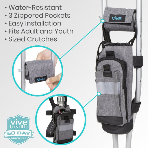 The crutch accessory kit enhances standard crutches by transforming them into comfort mobility aids. Items like storage bags, under arm padded covers, hand grips and covers are included in this five piece set of soft and durable materials like foam. Essential items, through the use of water resistant storage pouch is preserved and is allowed for mobility.H2: Vive Health’s Specialized Mobility Solutions