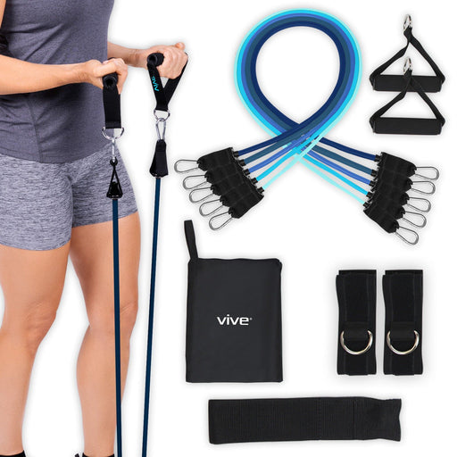 Strengthen and tone muscles Great for rehabilitation and physical therapy Five resistance levels Durable snap-free materials 11 piece set include...