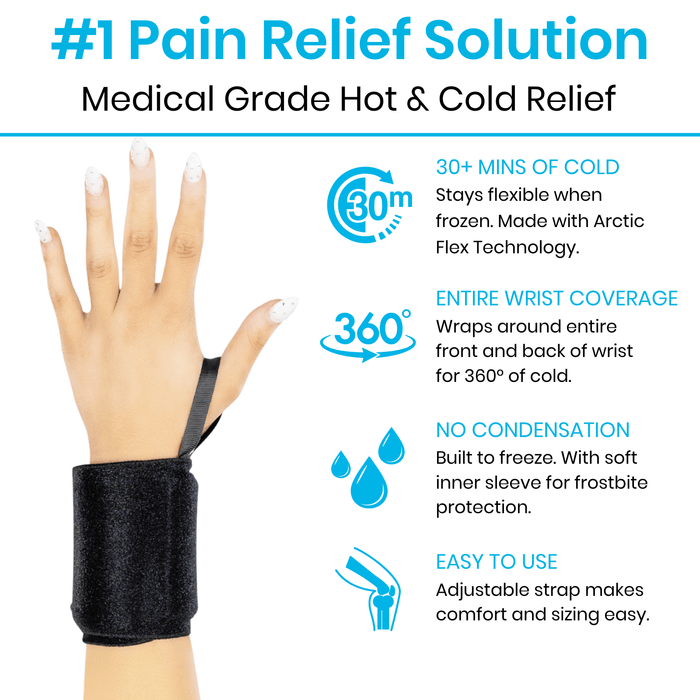 The Vive Hot and Cold Wrist Wraps are designed to relieve discomfort associated with arthritis, carpal tunnel, tendonitis, wrist sprains, and other wrist conditions. They provide targeted relief from pain and tension.