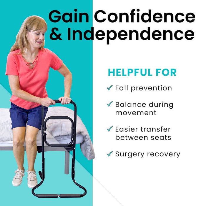 Experience unparalleled freedom with the versatile stand-alone design of this assistive aid, allowing you to use it in any room or area of your home. No installation or furniture attachments are required. Enjoy flexibility in the living room, bedroom, or bathroom, ensuring dependable assistance to reduce the risk of falls and promote independent living