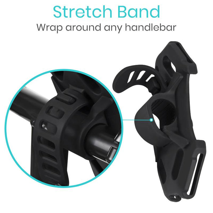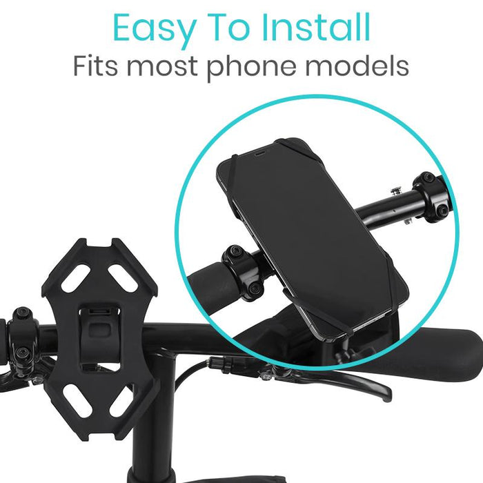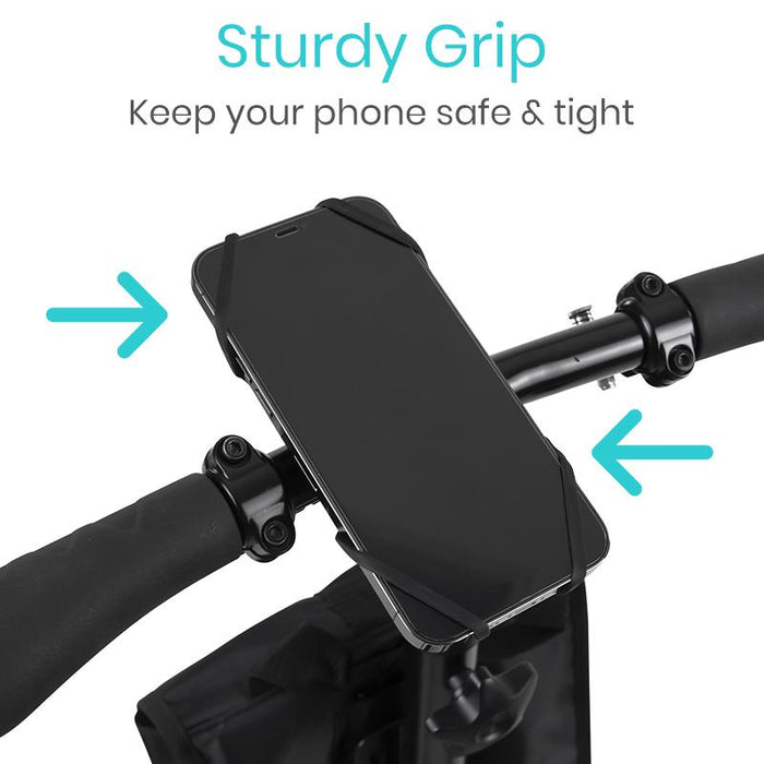 The adjustable phone mount easily adjusts to fit handlebar sizes up to 1.75” in diameter.