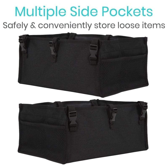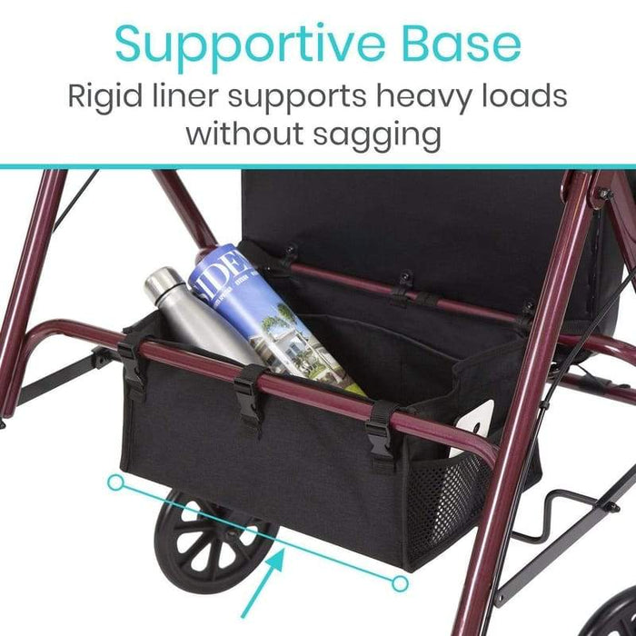 The Vive rollator seat bag is durably designed to hold up to 50 pounds.