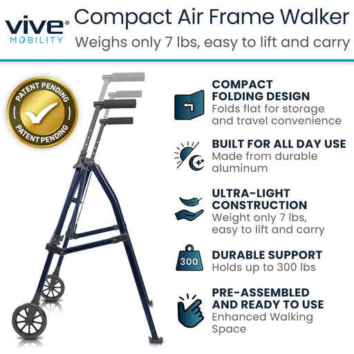 - Vive Lightweight Rollator: 14 pounds, holds up to 300 pounds and has 6-inch wheels that roll smoothly indoors and outdoors.