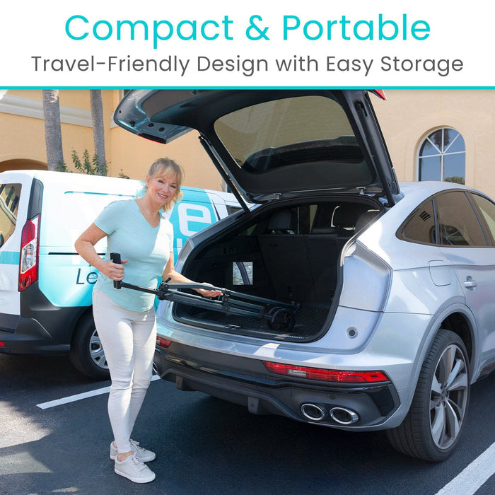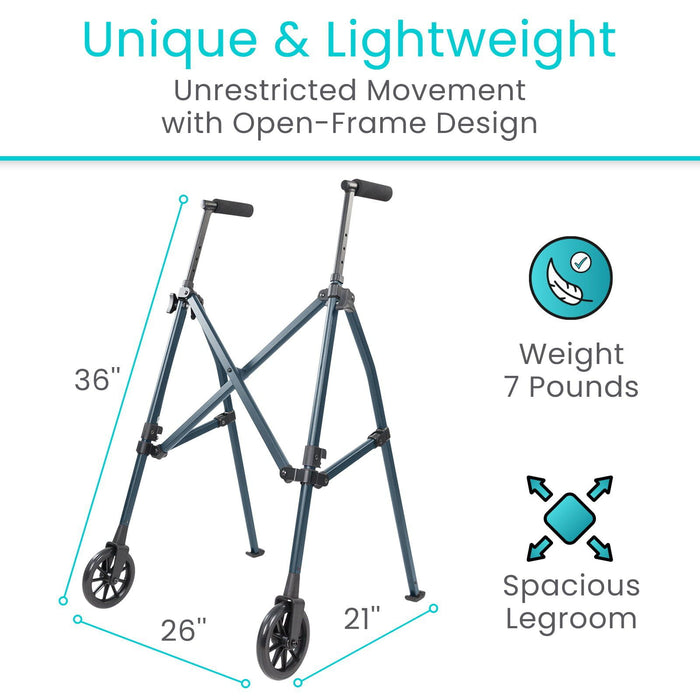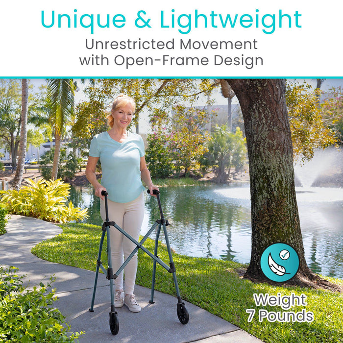 The Vive Compact Airframe Walker is the ideal companion for those with an active lifestyle, providing reliable support for up to 300 pounds while easily collapsing into a compact, travel-friendly frame. Its lightweight construction ensures it can accompany you on trips, or be stowed away while at home to maximize space and mobility