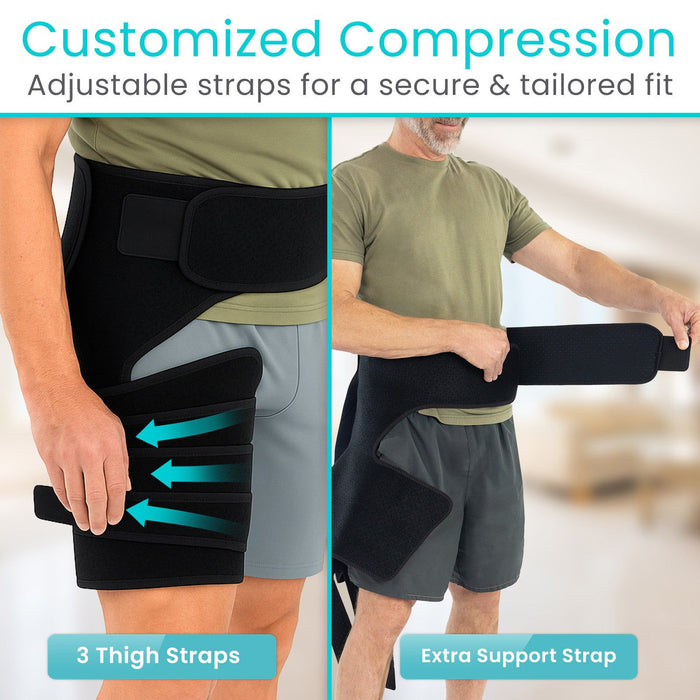 The Vive Groin Support is designed to relieve pain and support recovery from soft tissue injuries such as groin pulls, hip flexor strains, and muscle tears. It delivers targeted compression to aid healing and reduce inflammation.