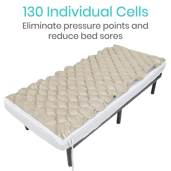 The alternating pressure mattress pad provides variable support based on your preferences, from very firm to soft when connected to an air pump such as the Vive variable air pump.