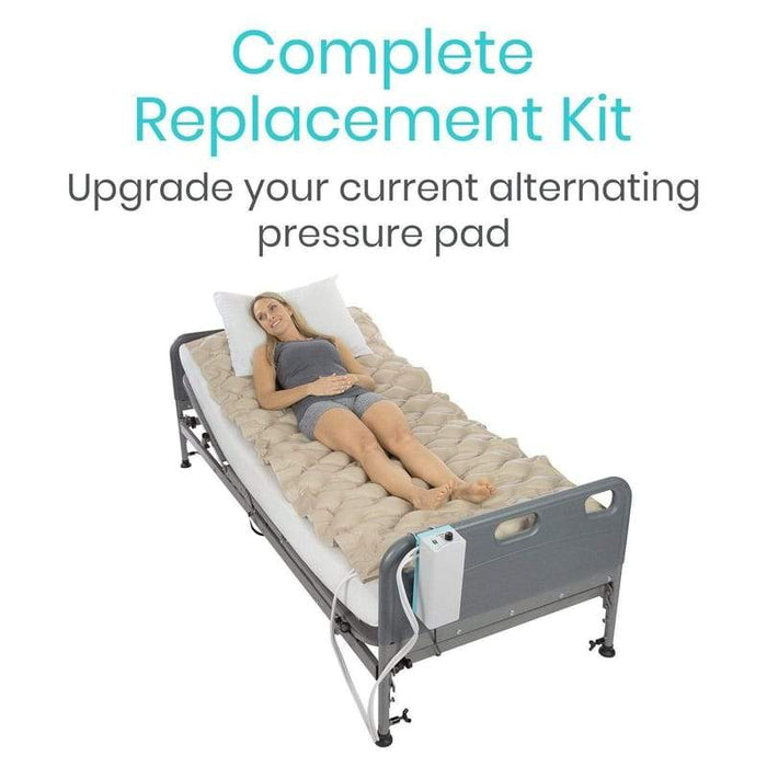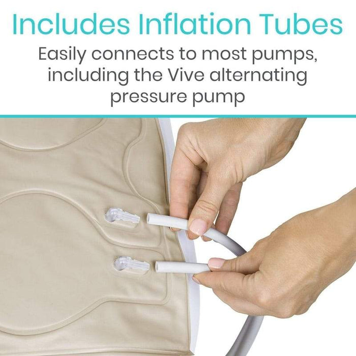 The Vive replacement alternating pressure mattress pad includes the mattress pad, dual inflation tubes and a patch kit. This set does not include a pressure pump.
