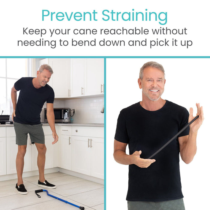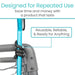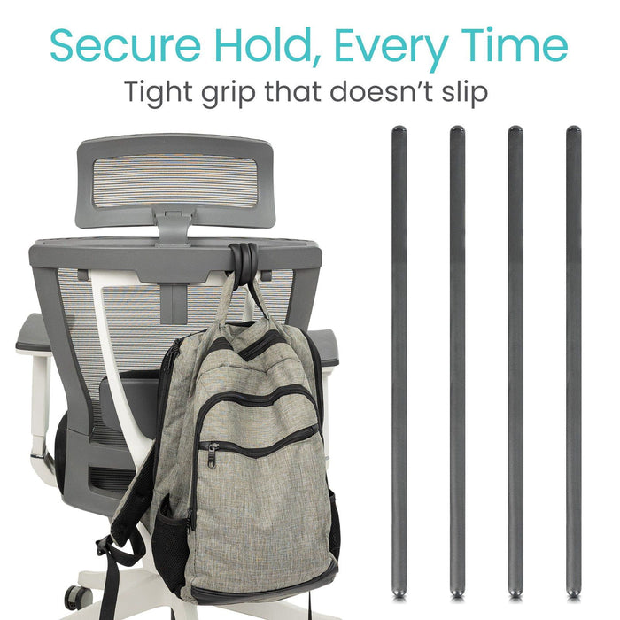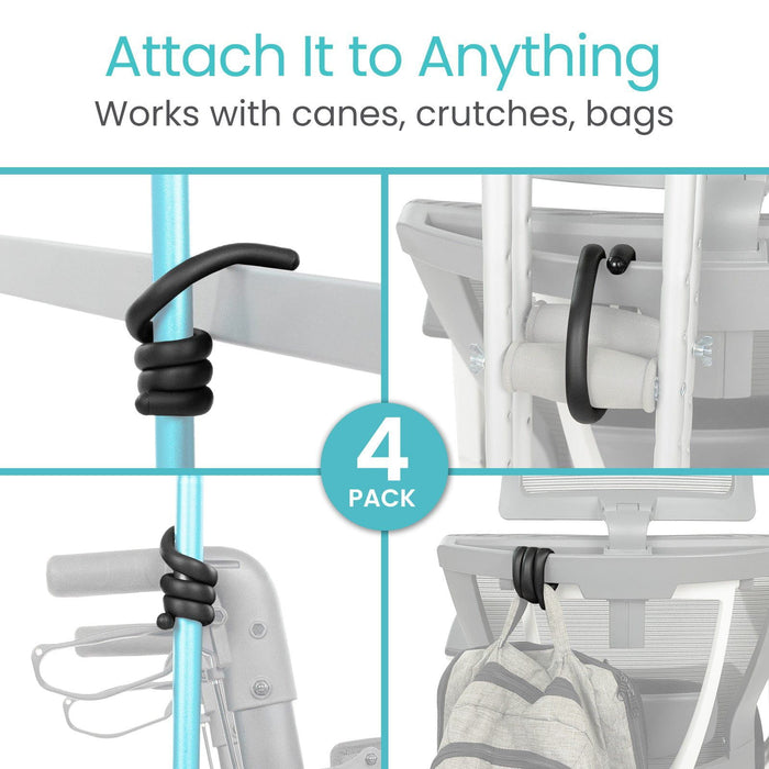 This multi-purpose holder can be used as a storage hook, phone holder, cable bundler, or padlock alternative. It securely attaches to canes, crutches, walkers, wheelchairs, tables, chairs, and more.
