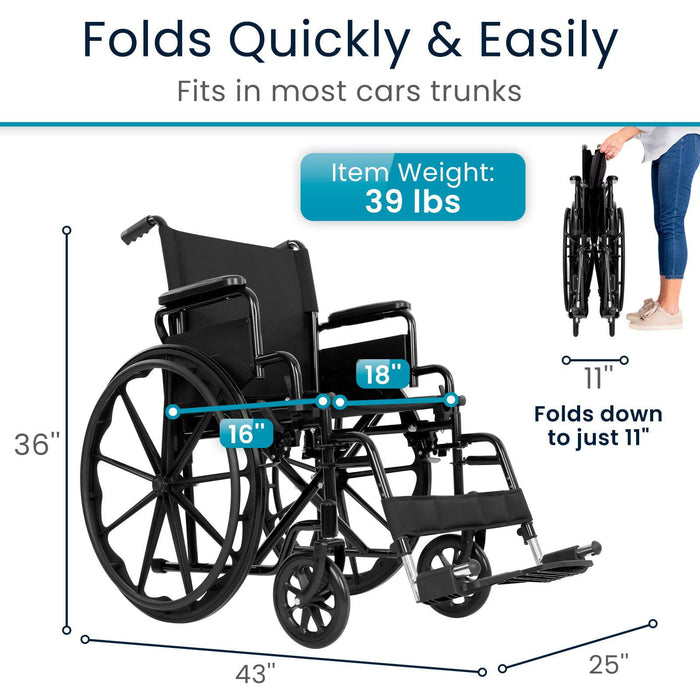 Absolutely! Weighing just 39 pounds, this wheelchair folds quickly for compact storage and easy transport, making it ideal for home use, travel, and everyday outings.
