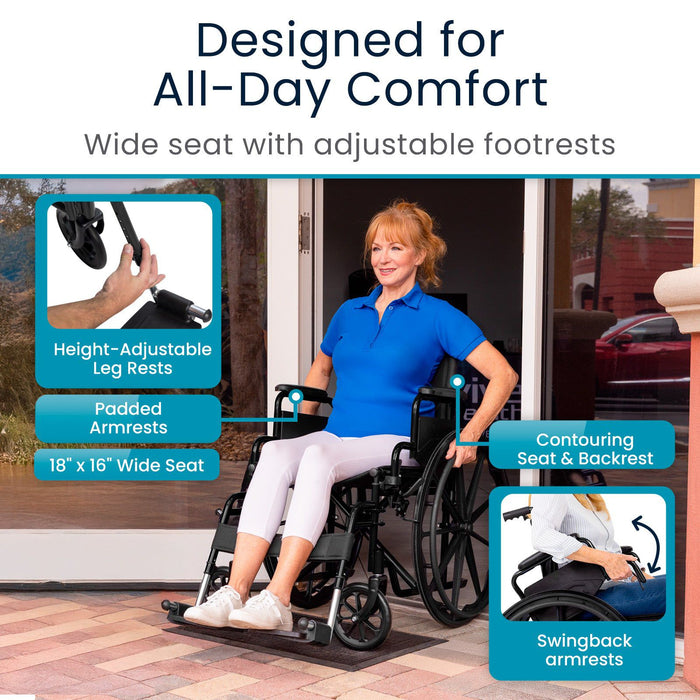 The swing-back armrests allow for seamless movement in and out of the wheelchair, making it easier to stand, sit, or reposition yourself comfortably.
