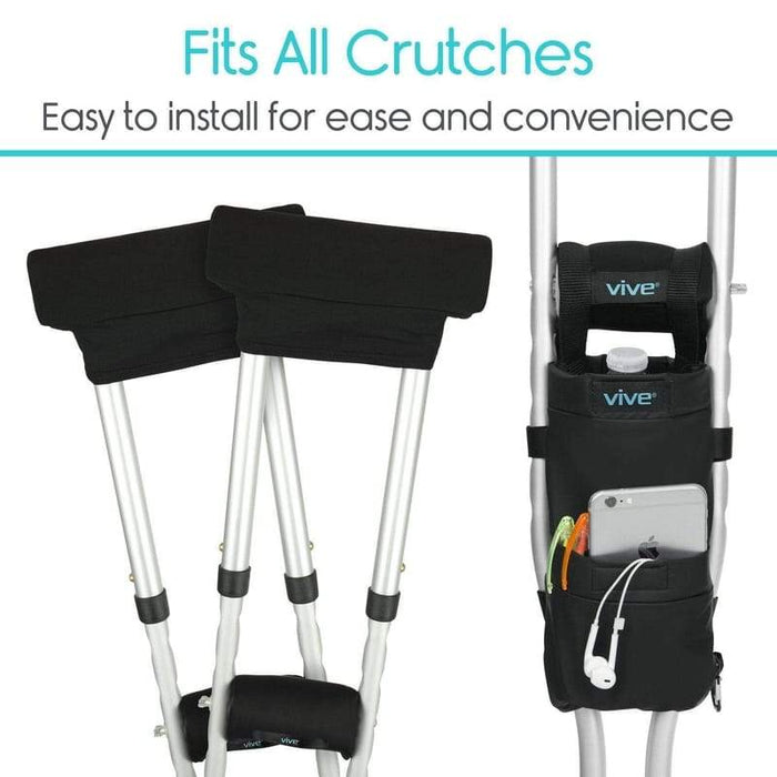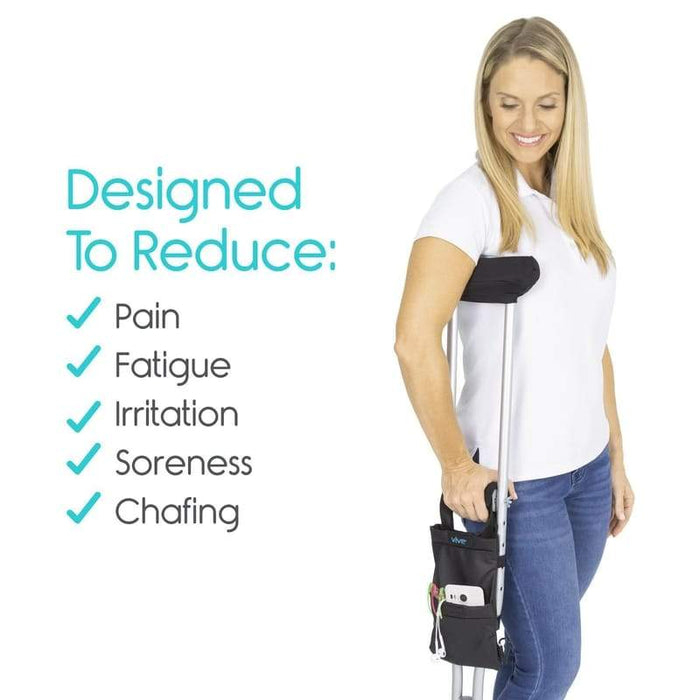 Includes a pair of Vive crutch pads and hand grips as well as a convenient crutch pouch