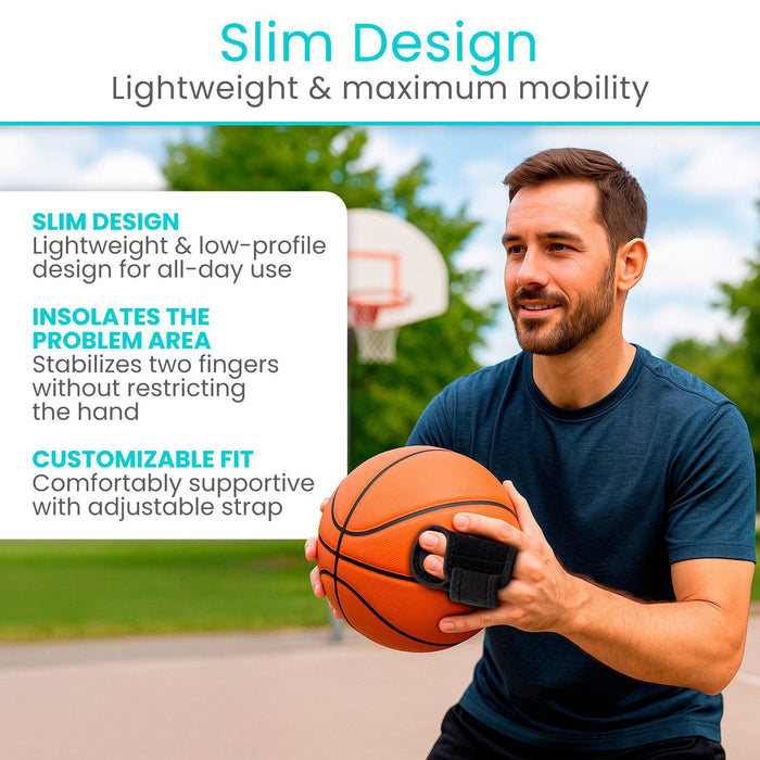 The dual-finger splint provides support and protection for conditions like arthritis, tendonitis, finger sprains, joint injuries, and swelling, and is great for managing pain from sports injuries.