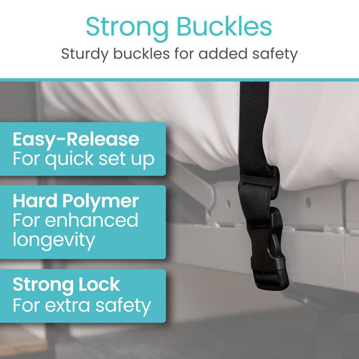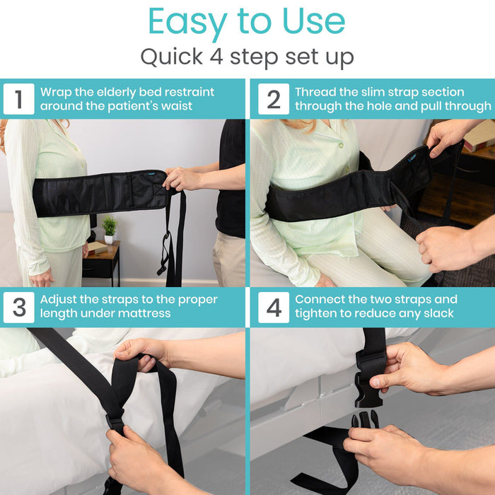 The bed restraint system comes with adjustable straps that can be easily customized to fit the size of the bed, whether it’s a hospital bed or a full-size mattress.
