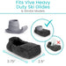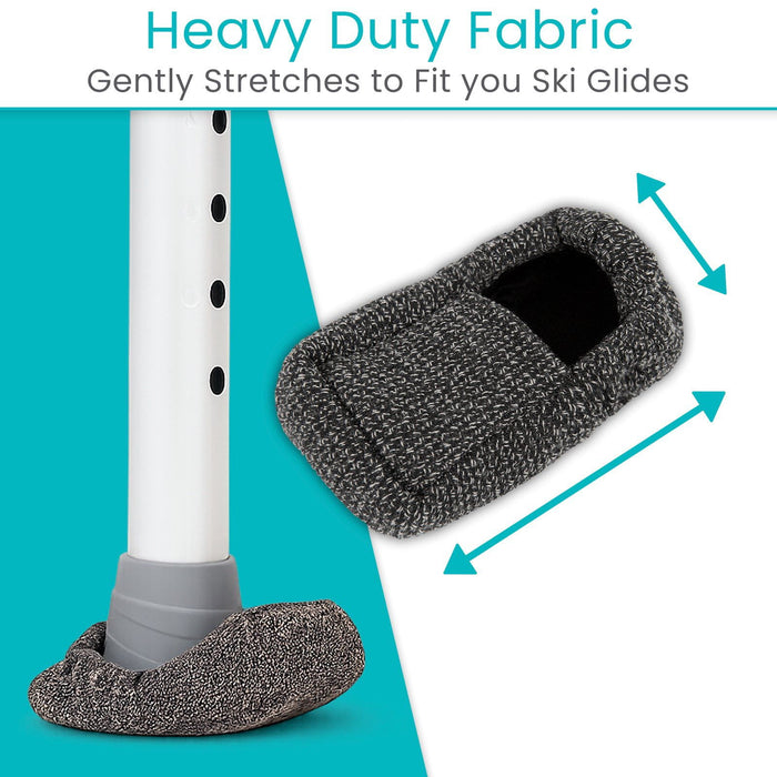 The covers are specifically designed to fit Vive Heavy Duty ski glides and similar models. They feature a stretchable fabric that ensures a snug, secure fit on most large glide types.