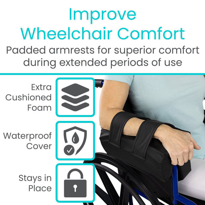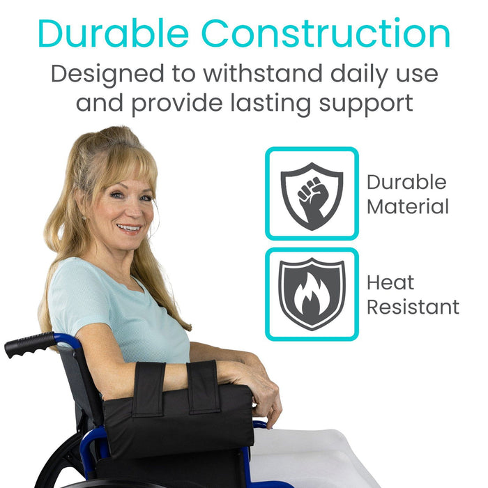 Upgrade your wheelchair’s comfort with our adjustable padded armrest. This padding is plush and seamlessly integrates with any wheelchair’s metal frame. This accessory promises a boost in comfort, so you can sit with a more relaxed and comfortable posture