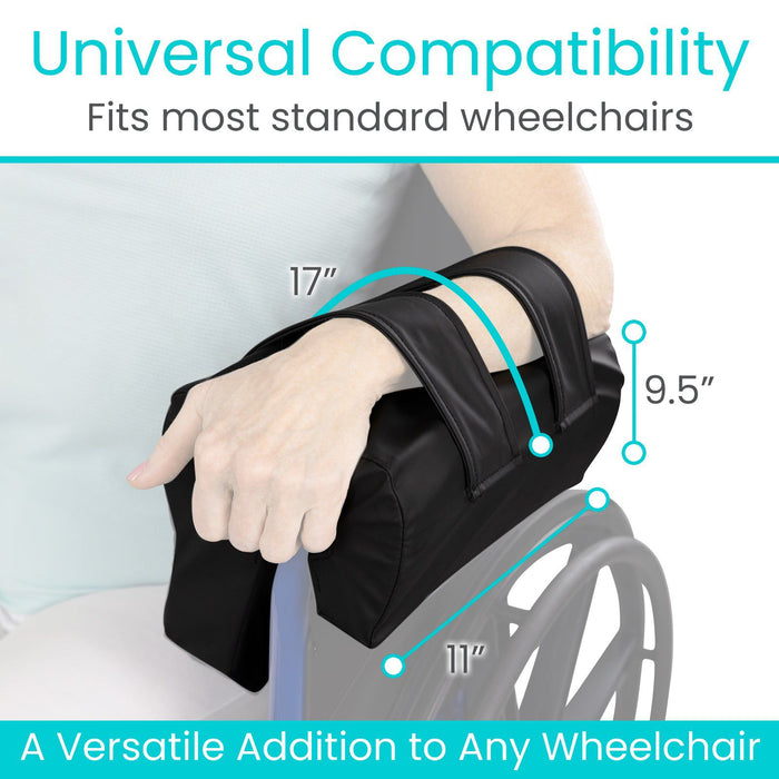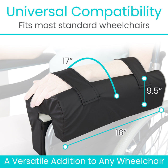 Yes, the armrest is available in two sizes, 11” and 16”, and features adjustable straps, making it universally compatible and easily customizable to fit a wide range of wheelchair models.