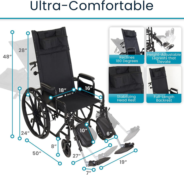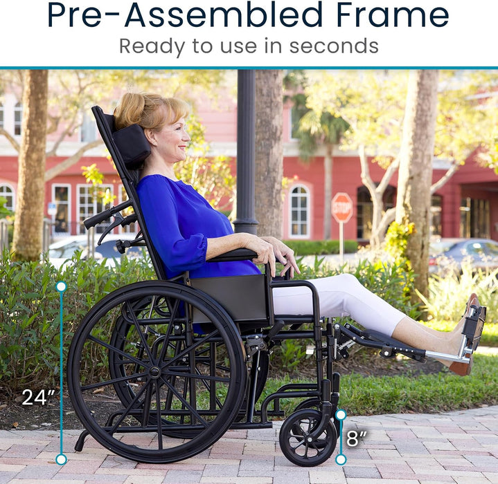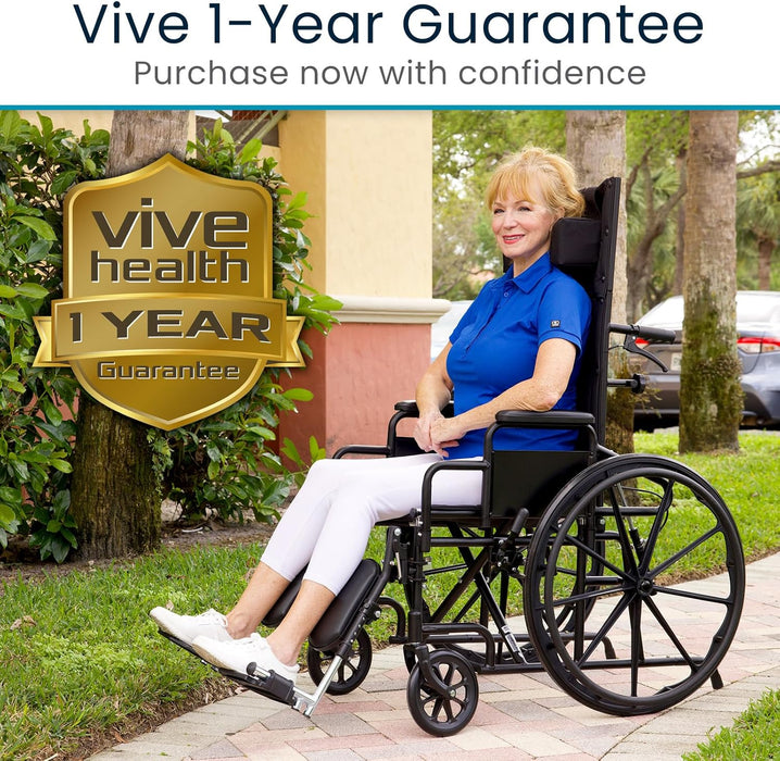The Vive Reclining Wheelchair with Headrest comes with a 60-day guarantee and 90-days for the wheels, allowing you to purchase with confidence.