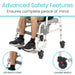 Equipped with sturdy locking wheels, the chair glides smoothly across different surfaces and locks firmly in place when needed. This feature enhances the chair’s stability and safety, providing peace of mind for users and caregivers alike.
