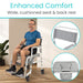 The Shower Commode Transport Chair is designed with non-porous surfaces that are quick to wipe down and resistant to water, ensuring easy cleaning and maintenance while maintaining high standards of hygiene.