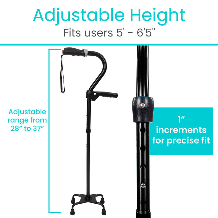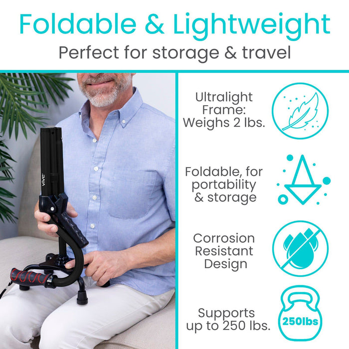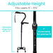 The Vive Stand Assist Cane is engineered for customization, with an adjustable height mechanism that ranges from 28 inches to 37 inches to suit users of varying heights. This feature ensures personalized comfort and support, promoting better posture and alignment while easily folding down for storage and travel