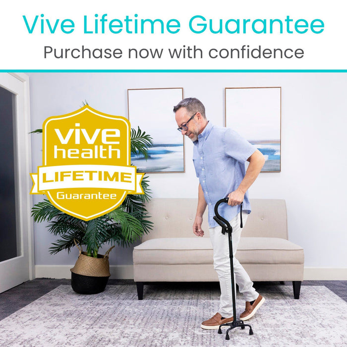Gain independence with the Vive Stand Assist Cane, featuring a self-standing, quad-prong base that allows the cane to remain upright and within easy reach. This innovative design enhances your safety by eliminating the need to bend down to pick up a fallen cane, reducing the risk of falls and providing dependable support