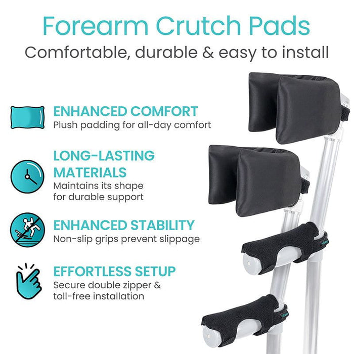 • A pair of forearm and hand crutch pads for enhanced support and comfort while using forearm crutches