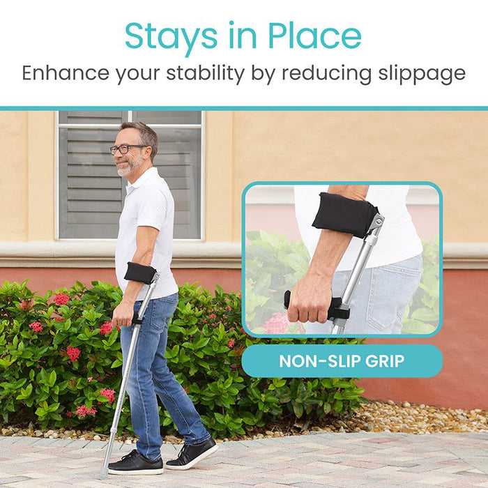 Improve your safety with our specialized forearm crutch hand pads, designed to deliver a secure, non-slip grip. This essential feature minimizes the risk of slips, providing crucial stability for users who are relying on crutches for daily support