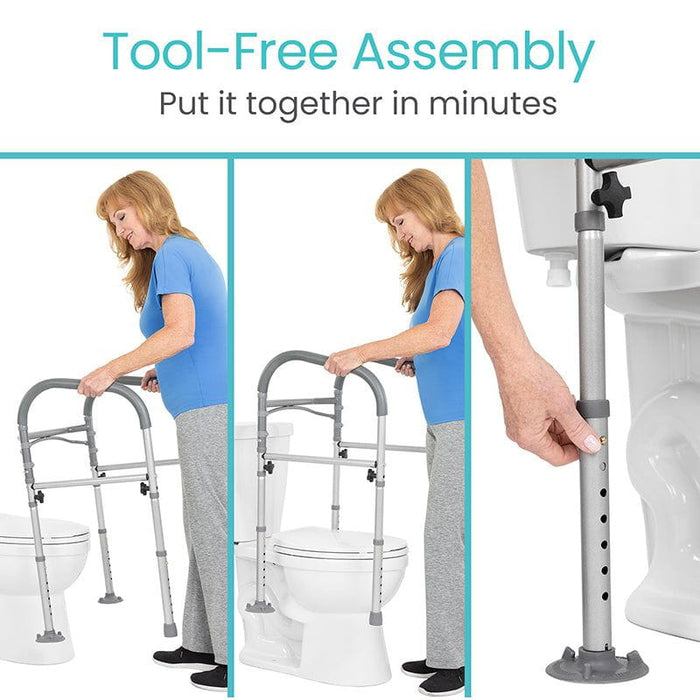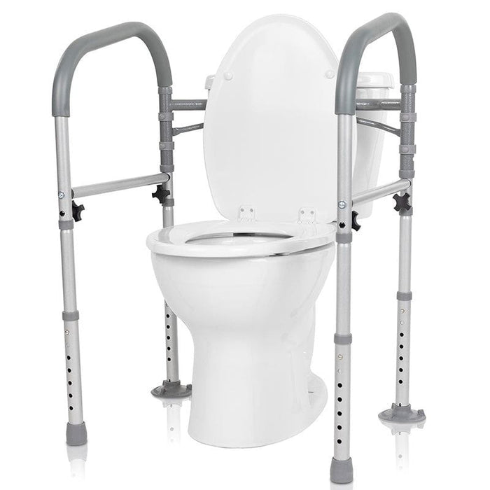 The freestanding design makes the safety rail compatible with most standard toilets. Its adjustable positioning allows it to fit comfortably around different toilet sizes and shapes.