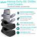 • A set of two heavy-duty ski glides with two covers for smooth movement over a variety of surfaces.