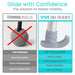 These reinforced ski glides are larger than standard options, offering improved balance and smoother movement for greater control indoors and out.
